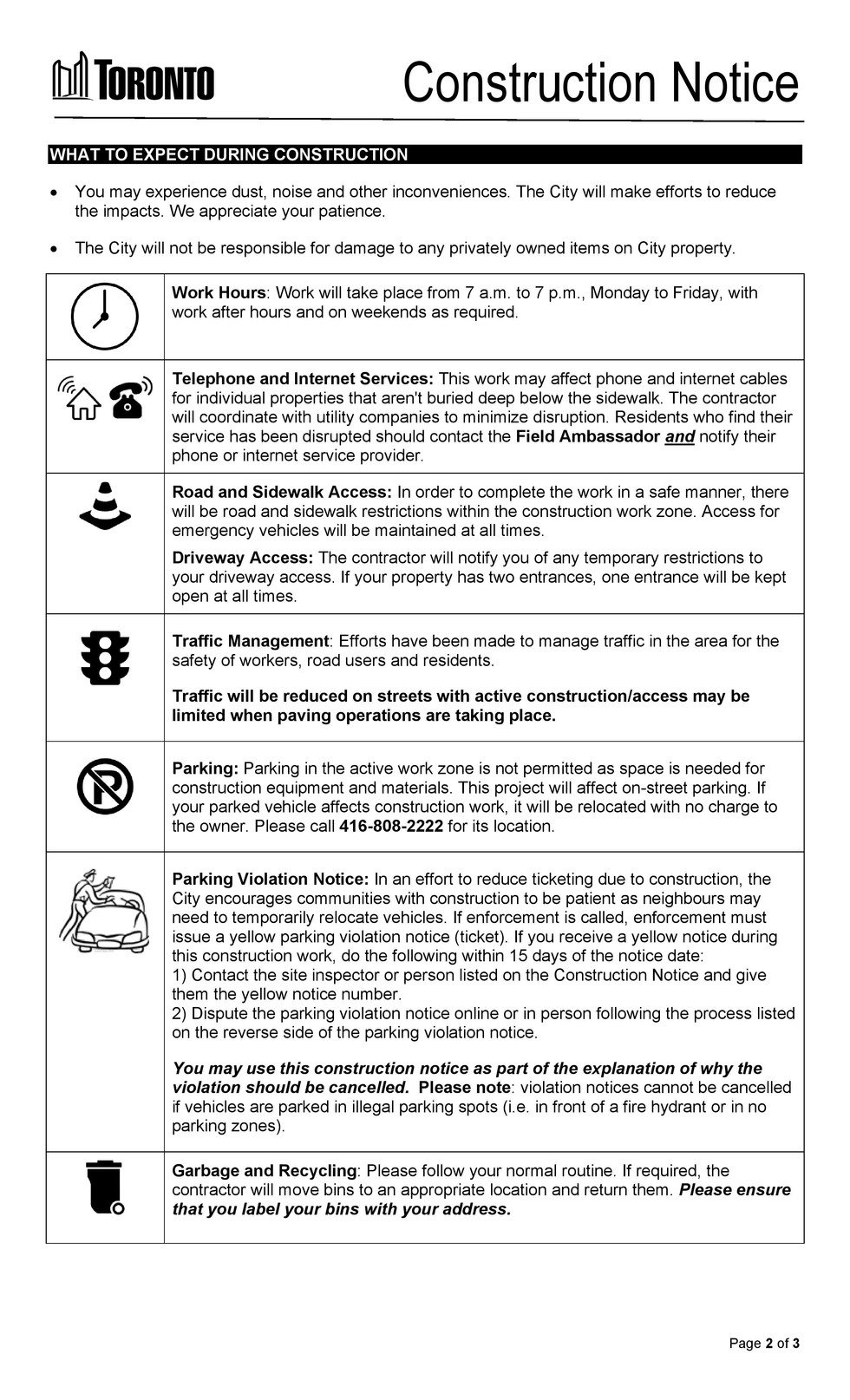 Parking Violation Notice: In an effort to reduce ticketing due to construction, the