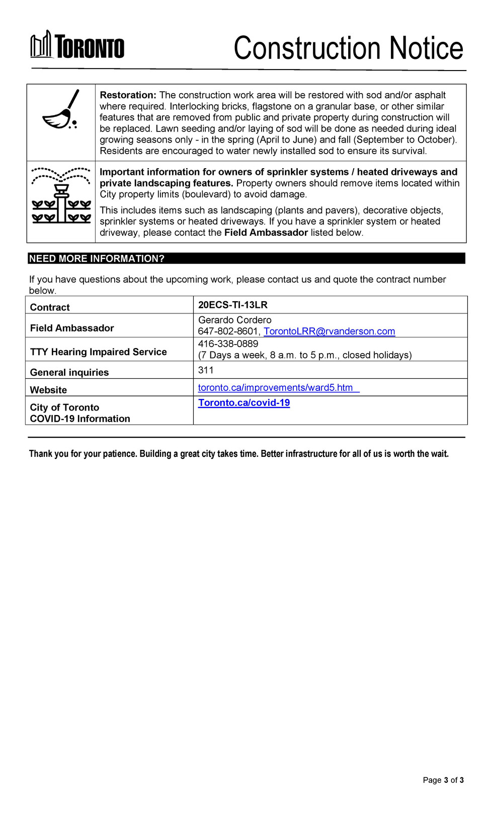 IMPORTANT INFORMATION ABOUT COVID-19 AND CONSTRUCTION WORK IN TORONTO